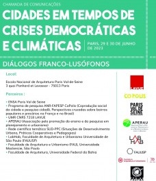 Temos o prazer de divulgar a chamada para o evento Diálogos Franco-Lusófonos de 2023: "Cidades em tempos de crises democráticas e climáticas, que será realizado entre 29 e 30 de junho de 2023 na Ensa Paris Val de Seine, França.